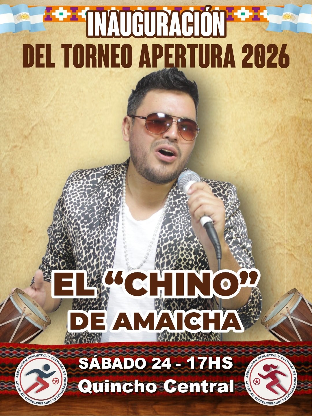 🗓️ Este sábado 24 de enero, el inicio del Torneo Apertura 2026 contará además con la actuación en vivo del “Chino” de Amaicha, reconocido folclorista tucumano con un profundo cariño por nuestra música, nuestra tierra y nuestra cultura.